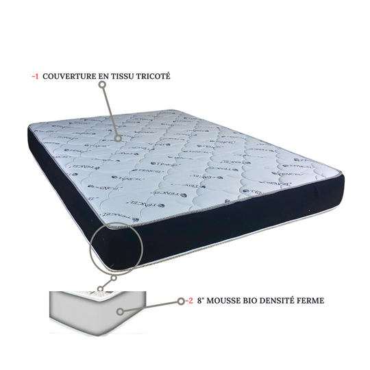 Matelas Queen – Mousse Bio de 8" avec Housse Tencel Tricotée